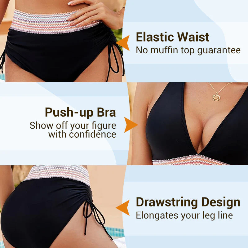 👙High Waisted Tummy Control Colour Block Bikini Sets